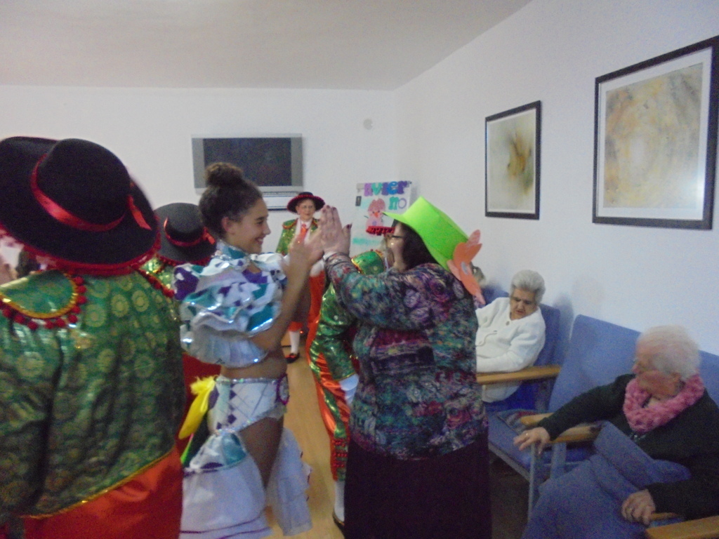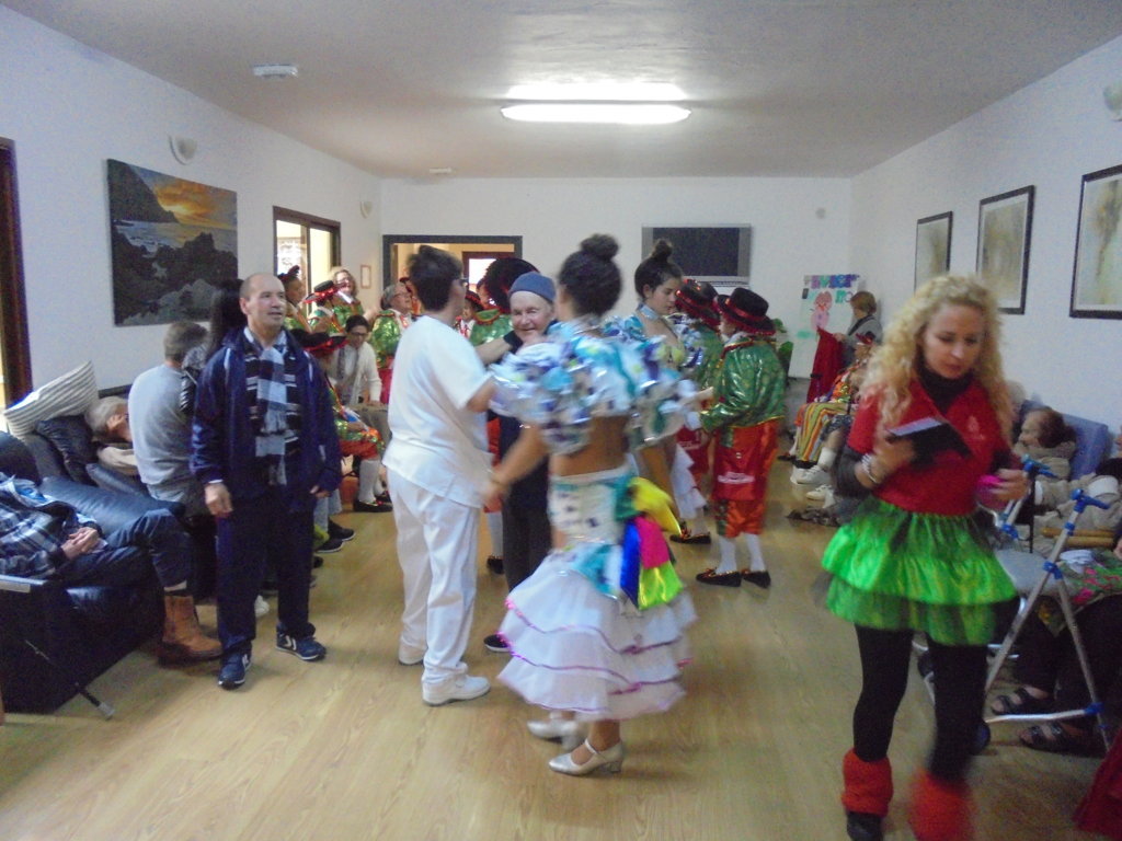 Los usuarios del Centro Sociosanitario San Juan de la Rambla, ELYTEN, disfrutaron con la energía y la marcha de las componentes de la murga bailando al ritmo, de los pasos marcados por dos expertas de comparsa, que a través del Proyecto ANSINA, del Excmo Cabildo Insular de Tenerife, quisieron aportar su granito de arena.