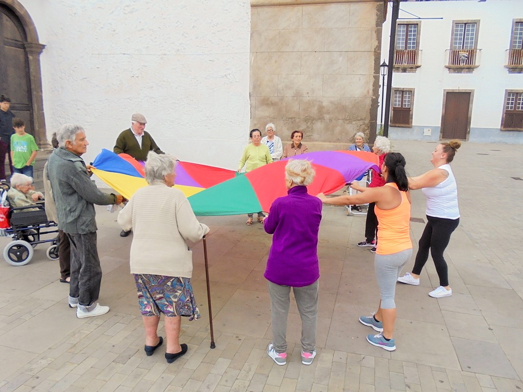 Algunos de los usuarios del Centro Sociosanitario San Juan de la Rambla, "ELYTEN" quisieron dar un paseo por las calles más céntricas del casco del municipio, buscando la tranquilidad y la paz que les transmite , así como su Iglesia San Juan Bautista .