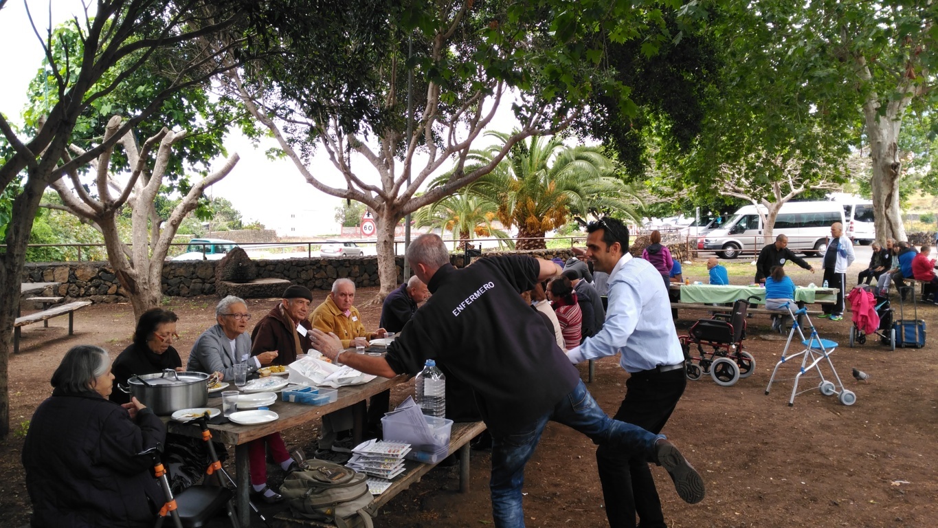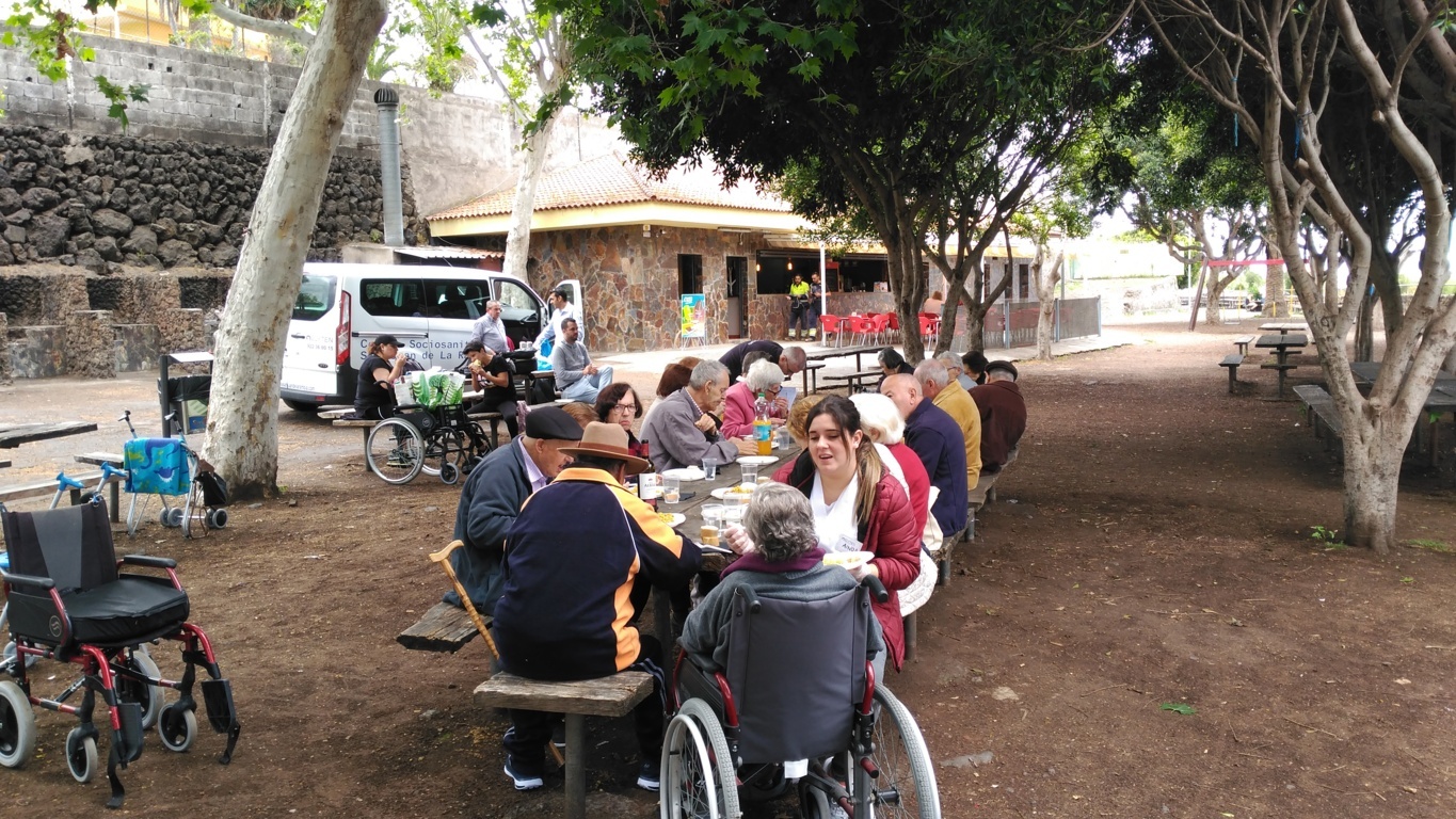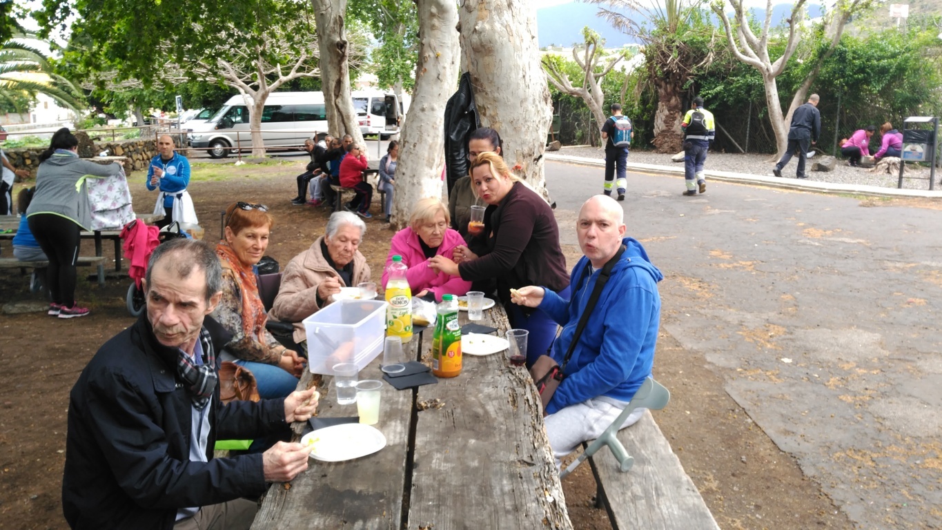 Los usuarios del Centro Sociosanitario de San Juan de la Rambla, "ELYTEN", realizaron un encuentro con la Asociación de mayores de La Orotava, en donde pudieron compartir una mañana agradable llevando a cabo diferentes actividades como, manualidades, actividad musical de cantos populares y visita en diferentes grupos a la Iglesia de San Agustín, acompañados por voluntariado de AMAVITE, para finalmente almorzar todos juntos en el parque de La Higuerita (Vera del Puerto de La Cruz) y regresar al Centro en los diferentes medios de transporte después de la sobremesa.