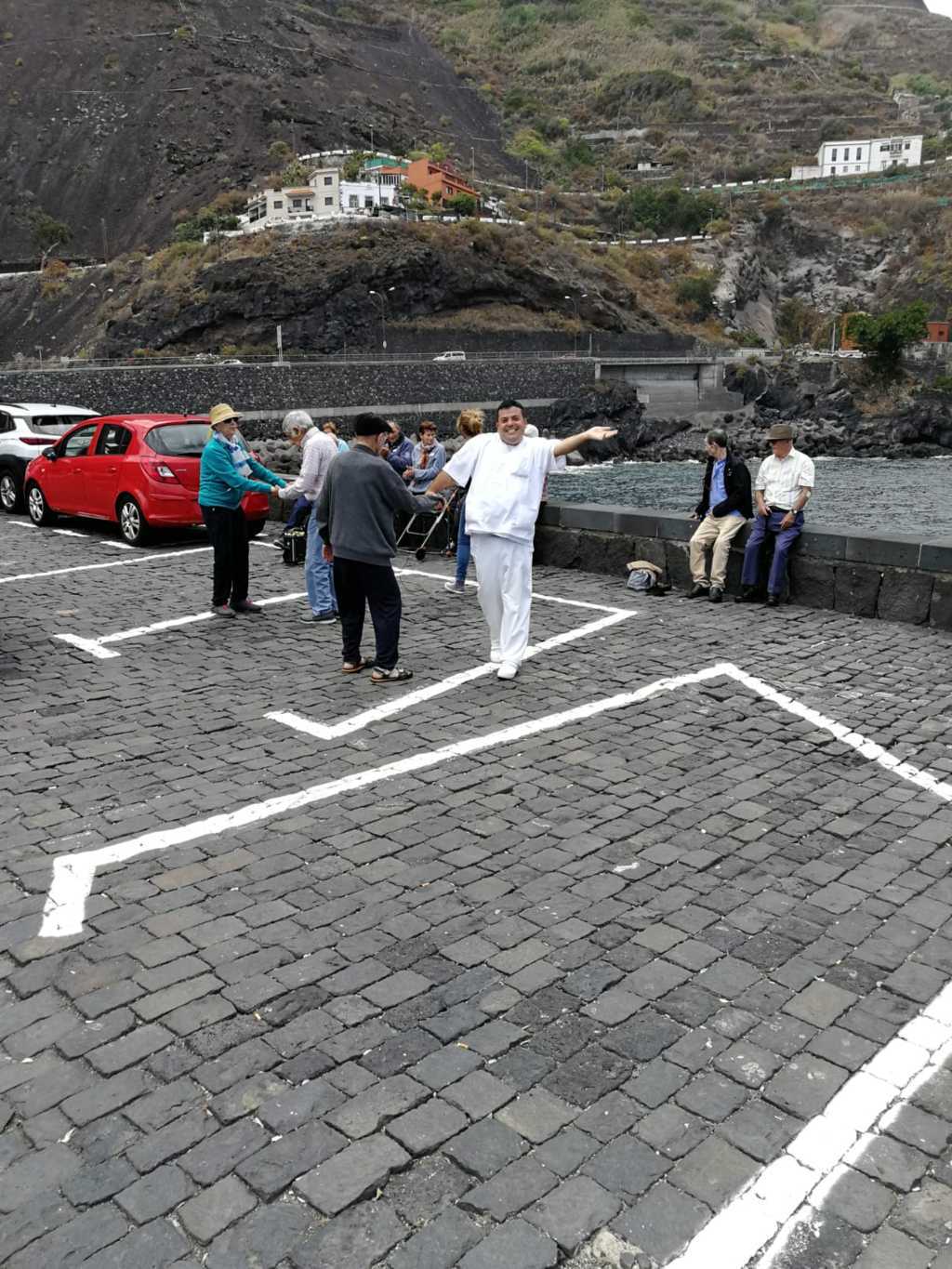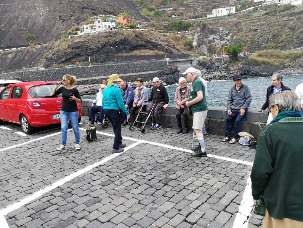 Finalizada la práctica religiosa y aprovechando el lugar, realizaron un desayuno de media mañana, para tomar fuerzas y paseando por sus calles, dejando atrás la Plaza de La Pila y Castillo de San Miguel, llegar hasta el antiguo muelle del municipio, donde hubo momento de distensión musical, a través del cual, no dudaron en bailar, cantar y compartir con los visitantes que, como ellos, disfrutaron de la ocasión y del tiempo agradable que acompañaba.