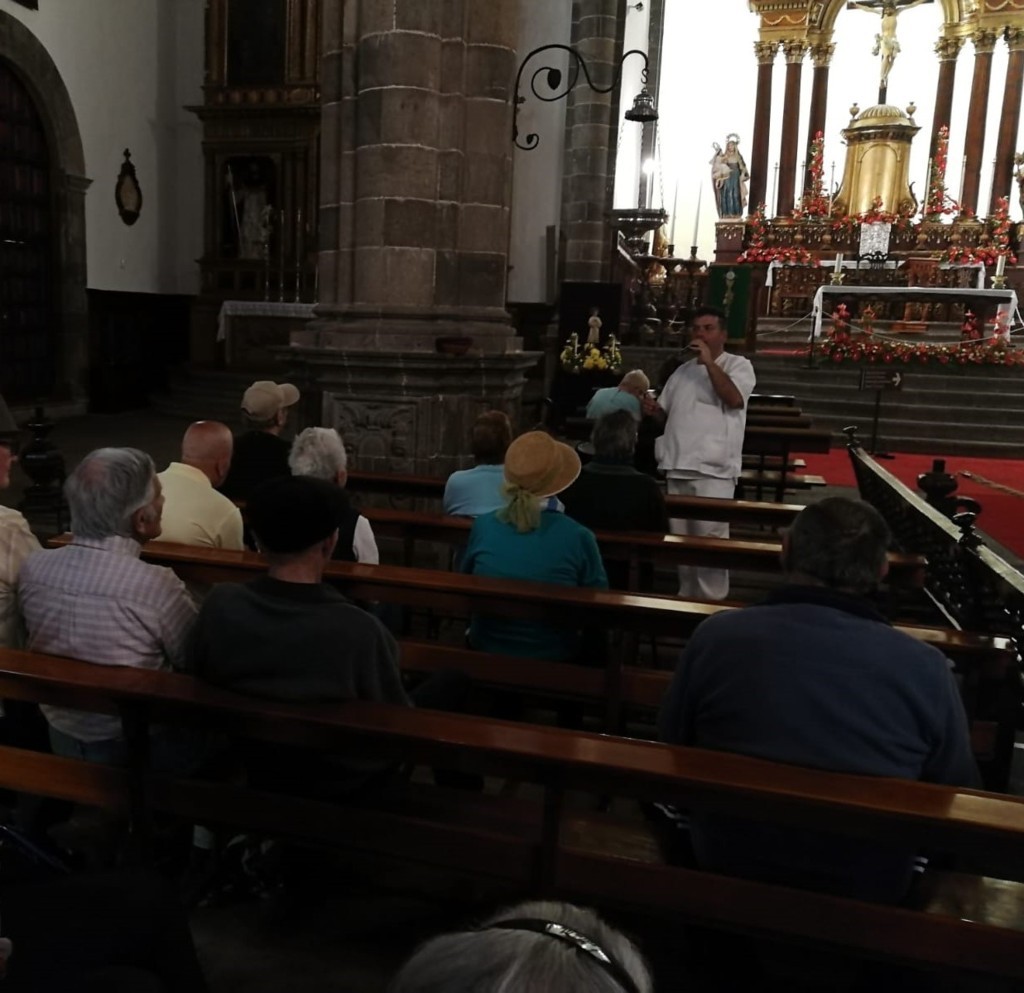 Los usuarios del Centro Sociosanitario de San Juan de la Rambla, "ELYTEN", visitaron con el permiso del párroco D. Domingo M. Glez Ruiz, la Iglesia de Sta Ana, como primera parada, para con la colaboración de David, gerocultor de nuestro Centro y monaguillo de nuestro municipio, rezar el habitual Rosario, que tienen como rutina y costumbre en nuestras instalaciones.