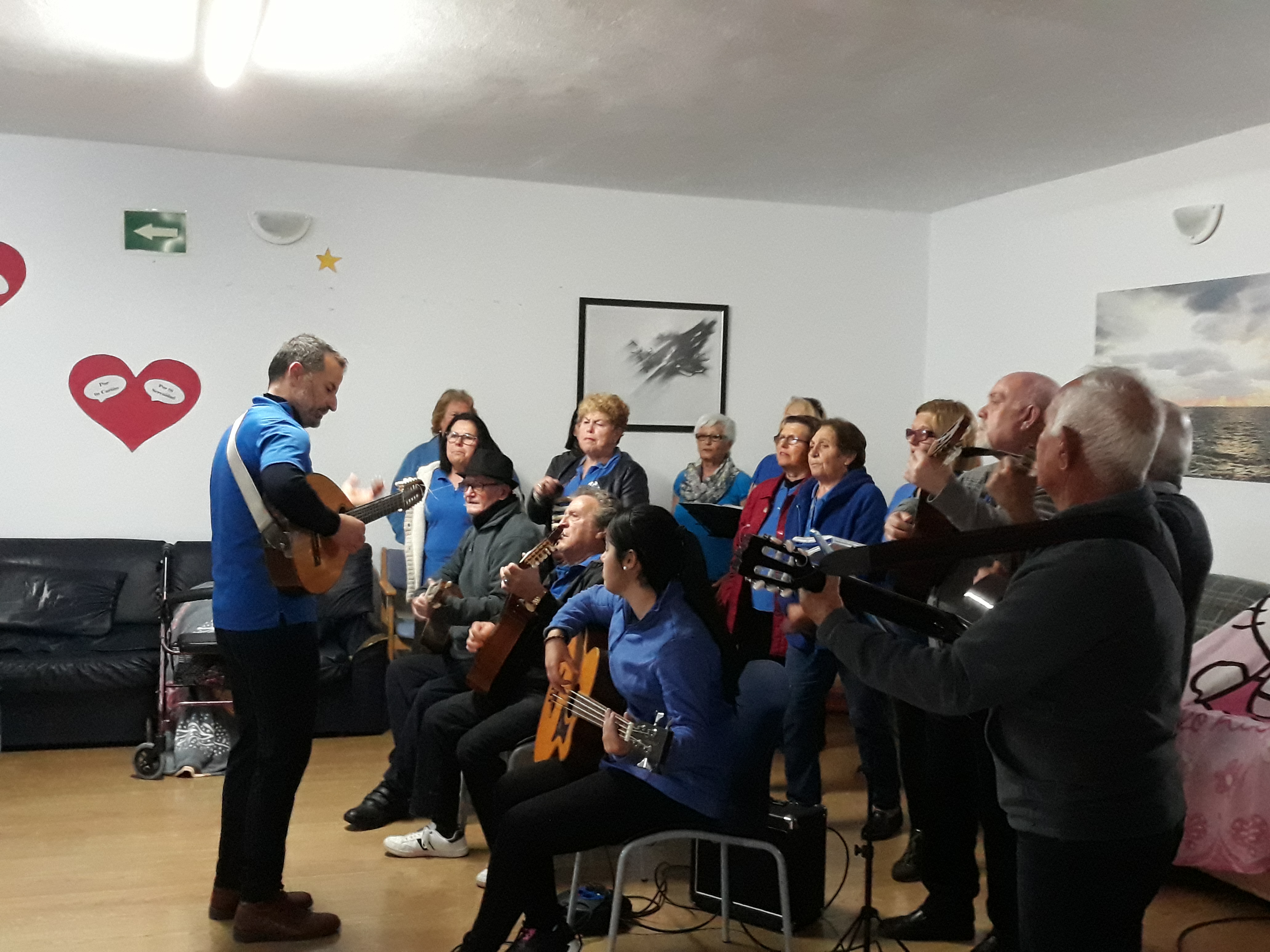 Esta parranda está formada por 15 componentes. Su presidente, Don Benito y el resto de compañeros quisieron acompañar a nuestros residentes en horario de tarde, para amenizar y apoyar también a su compañero y usuario del centro Don Dionisio Pérez.