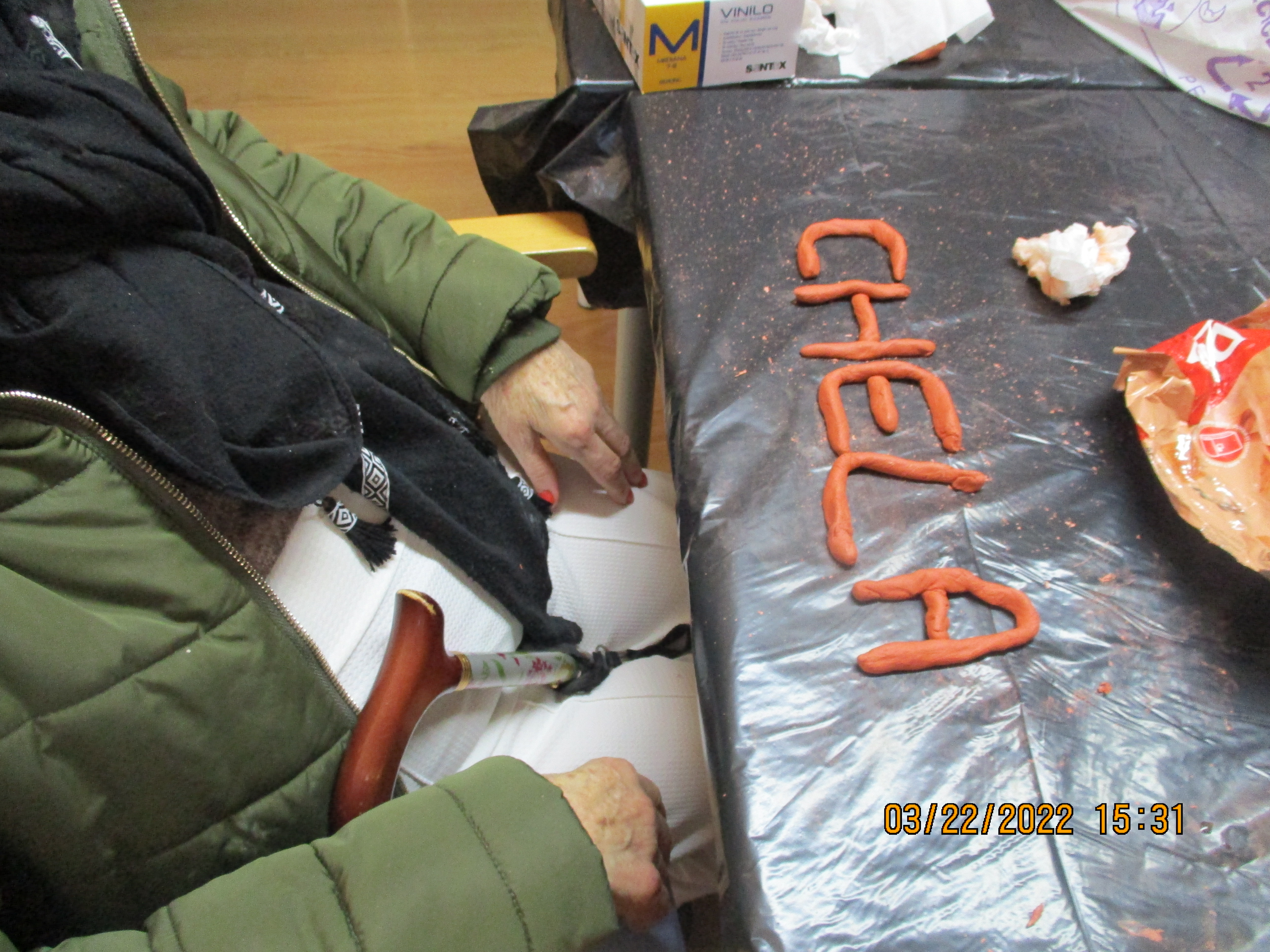 Hoy, en el Centro Sociosanitario San Juan de La Rambla, ELYTEN, las alumnas de prácticas Celia (integración social) y Shaidy (animación sociocultural) han realizado una actividad con arcilla con los usuarios y las usuarias de centro de día.
