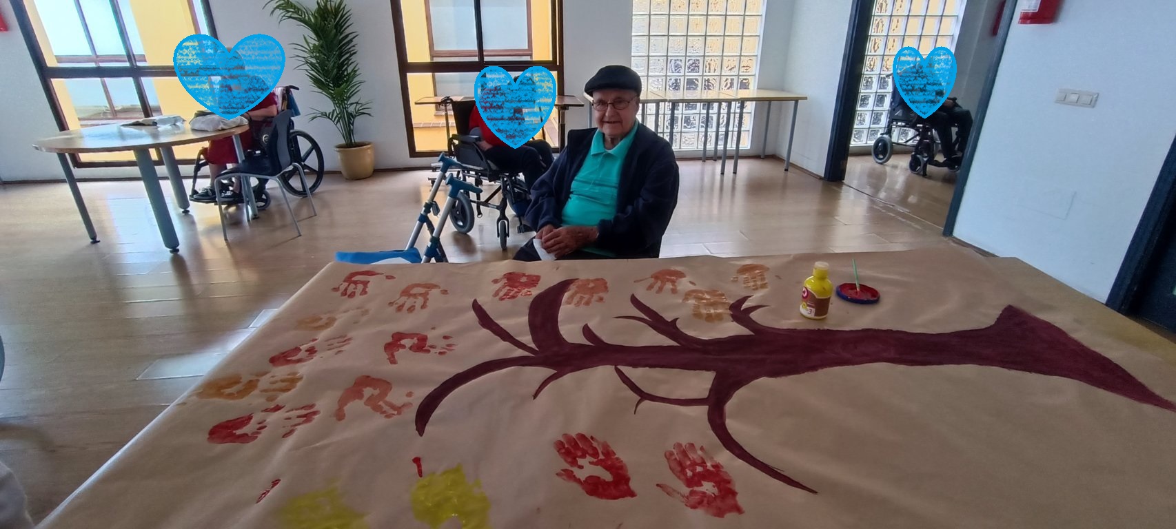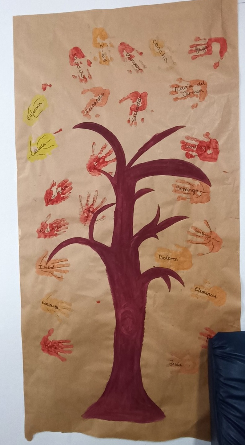 Ha quedado muy bonito y nuestros residentes nos lo comentan. Además de que, la sensación de pintarse las manos (aparte de hacerles cosquillas) les ha parecido bastante curiosa, pues por lo general, cuando se pintan o se manchan las manos, suelen borrárselo en el mismo instante.