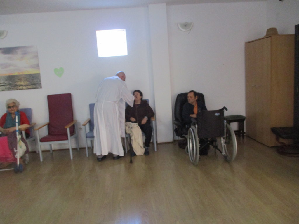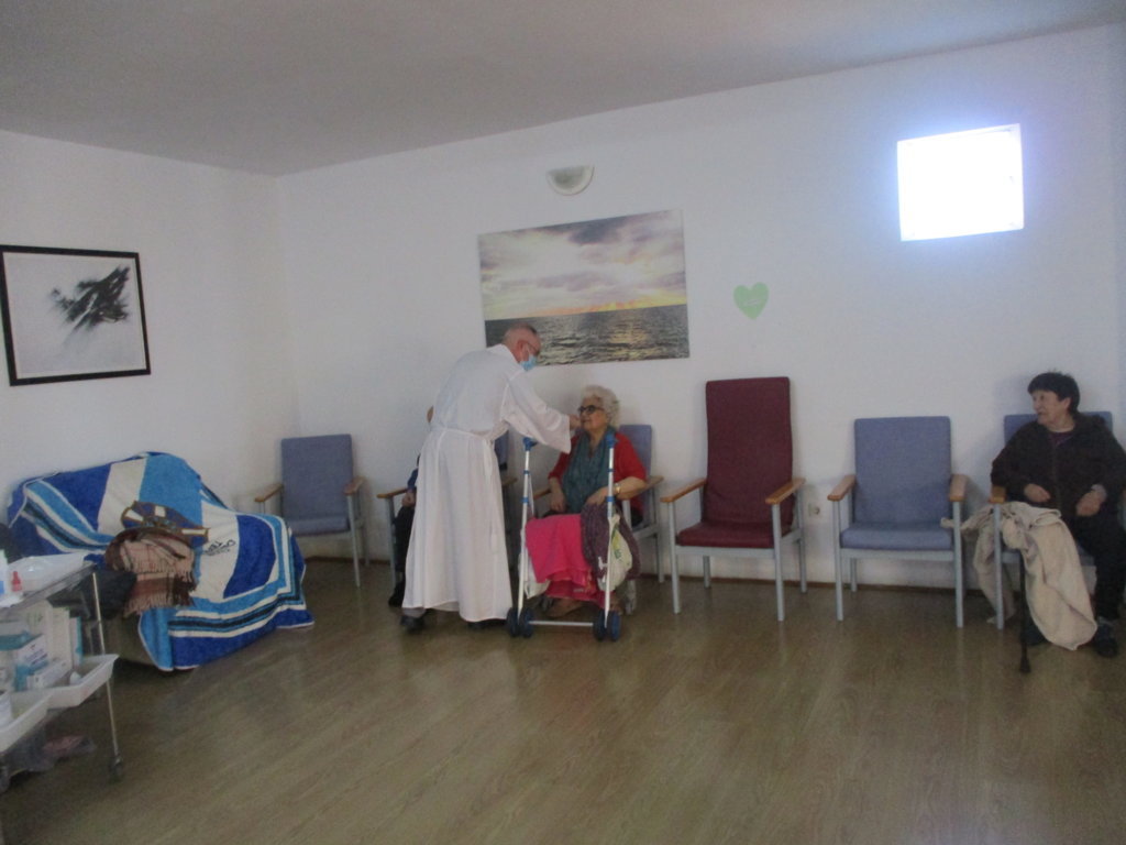 El párroco del municipio de San José, cada mes se organiza con el Centro Sociosanitario San Juan de La Rambla, ELYTEN, para realizar una misa con los usuarios y las usuarias de residencial.