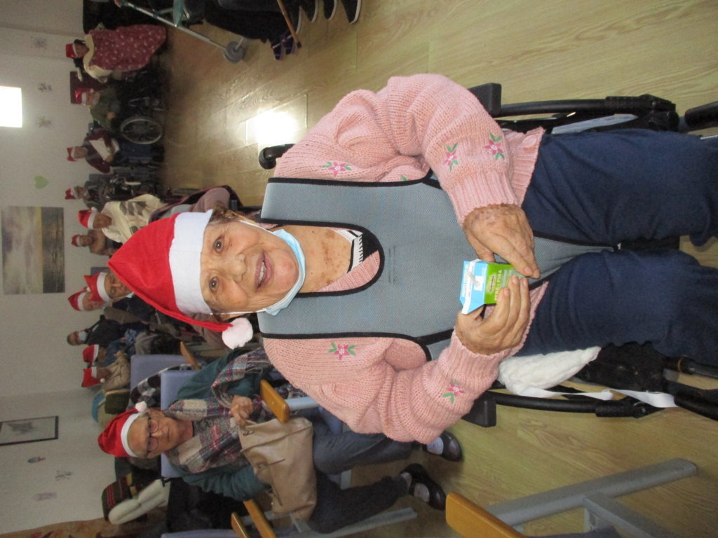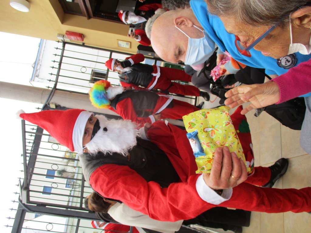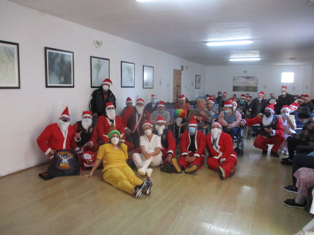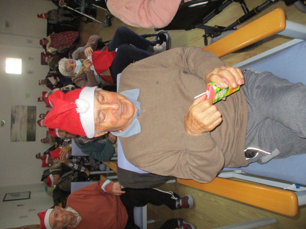 Nuestros mayores se lo han pasado estupendamente, no solo junto a la presencia de tantos Papá Noel sino que también disfrutando de la gran merienda que ellos han traído: unas tartas y jugos. La ilusión y vida que transmiten cada uno de nuestros mayores se puede ver reflejada en las imágenes, pues ellos y ellas no tenían idea de que este acontecimiento iba a suceder.