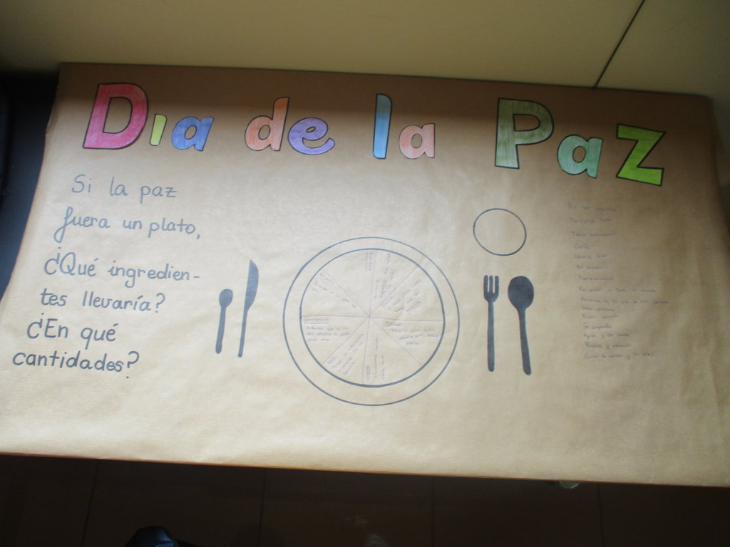 En este taller se han realizado varias actividades, entre ellas la tertulia sobre la paz, la guerra y sus consecuencias, y también la actividad llamada "Si la paz fuera un plato, ¿qué ingredientes llevaría?