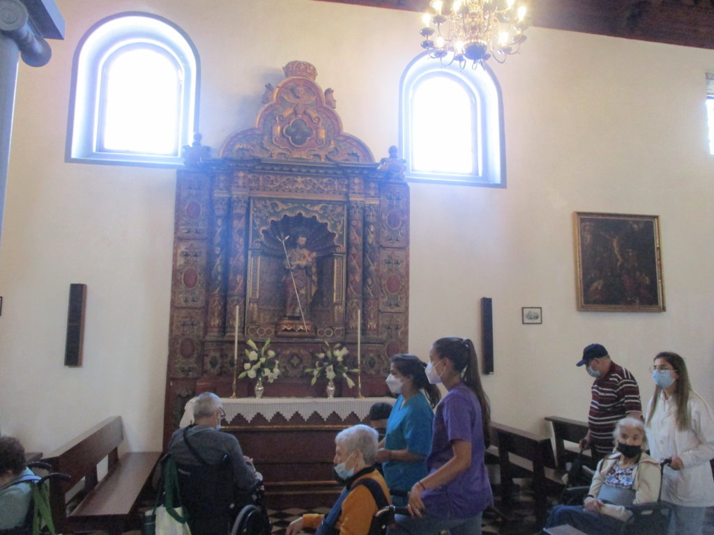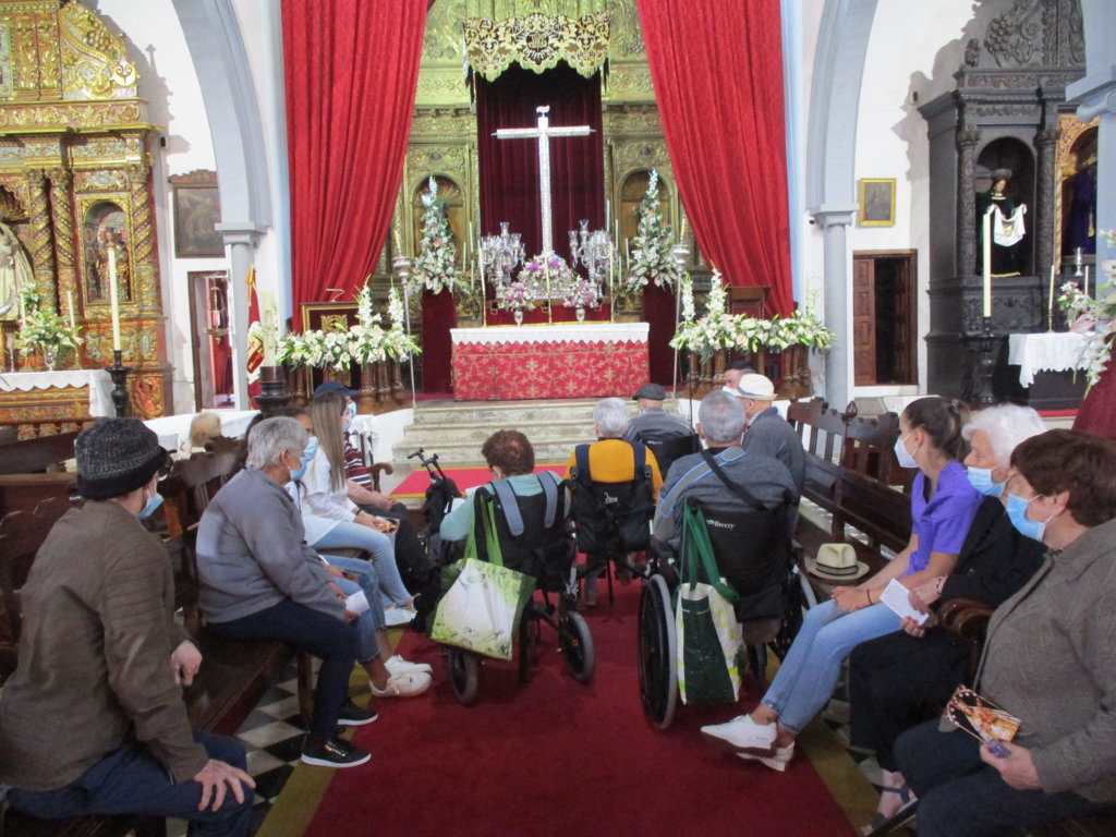 La guagua nos ha recogido temprano, para llevarnos hacia el centro de Los Realejos, concretamente en la Parroquia de Santiago Apóstol, pues el encargado de la misma nos ha abierto la parroquia para que nuestros mayores pudieran disfrutar de una visita guiada por nuestro compañero David, el cual rezó el rosario en la iglesia, además de admirar lo bonita que estaba decorada por la fiesta de la cruz.