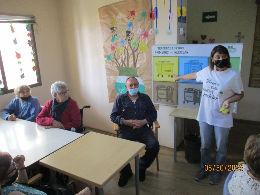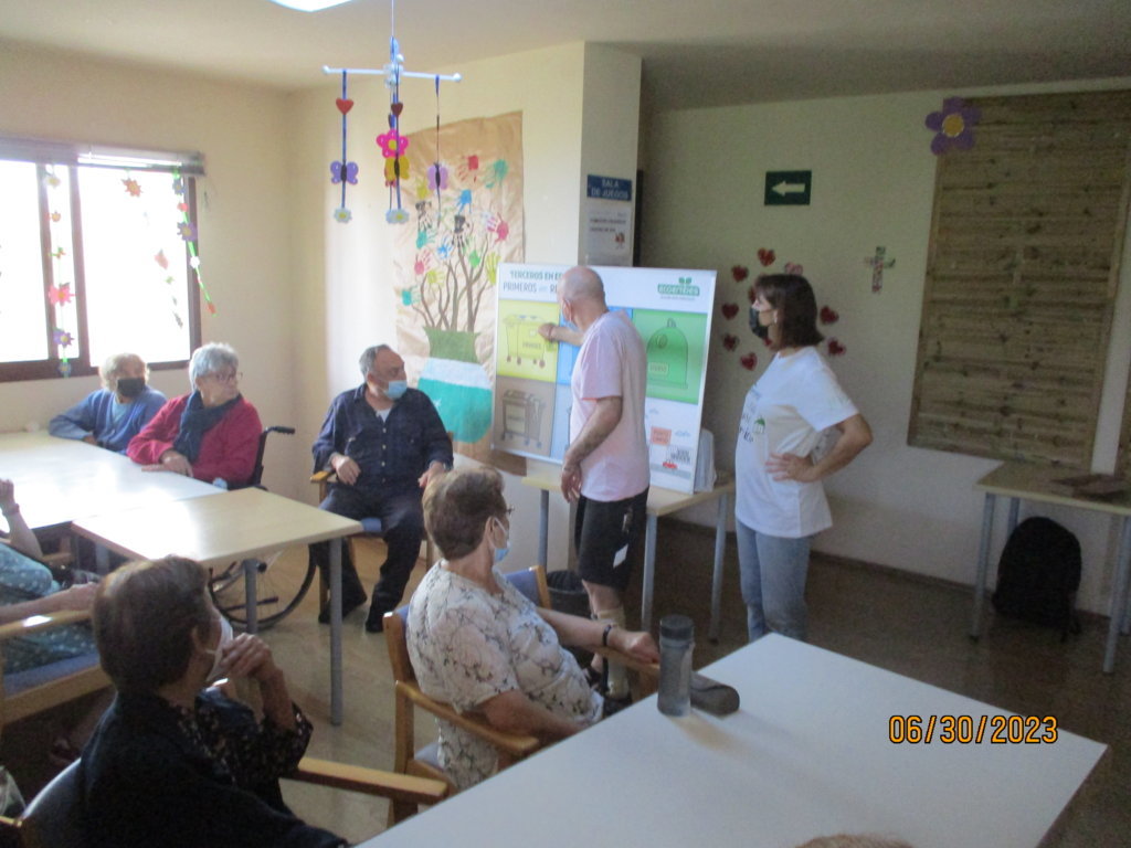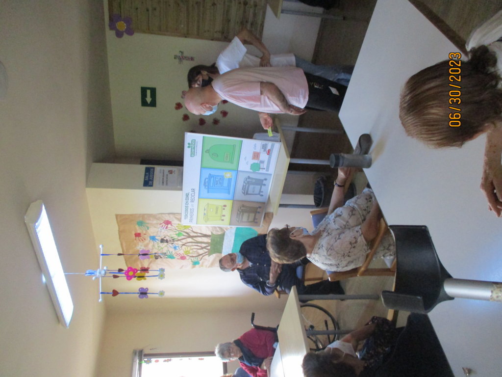 Tras informar a los trabajadores sobre la importancia del reciclaje y los nuevos contenedores, ha pasado a hacer una actividad de reciclaje con nuestros mayores.