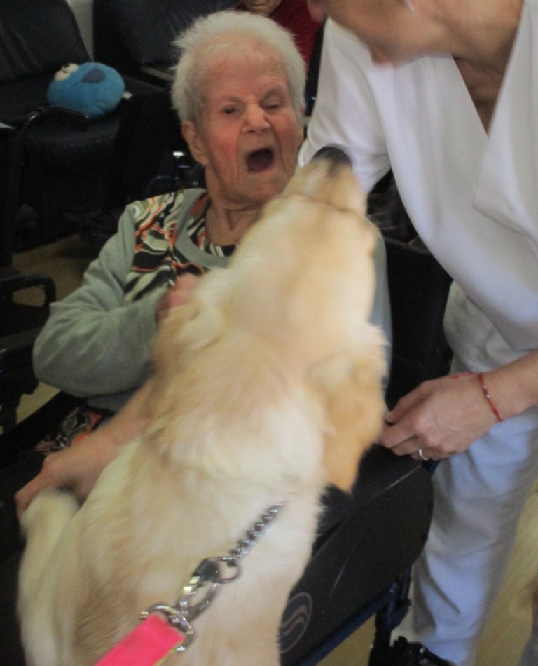 Recibimos en el Centro Sociosanitario San Juan de La Rambla, ELYTEN, por el día de la mascota, la compañía de Theo y de Isis para realizar la Terapia con Mascotas.