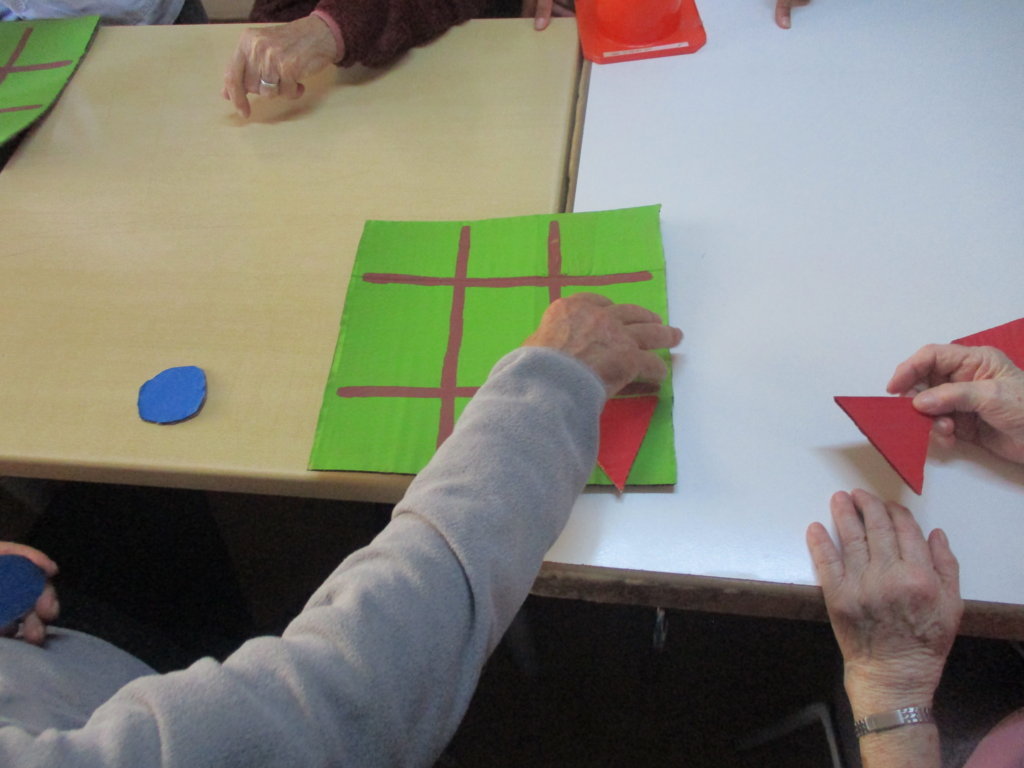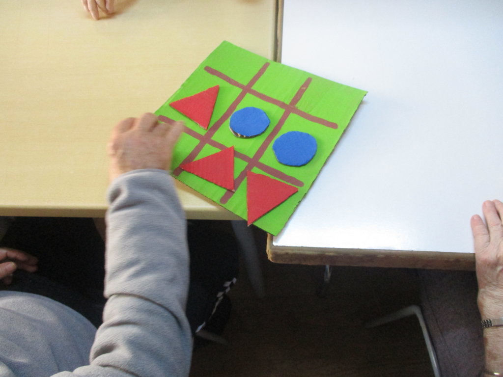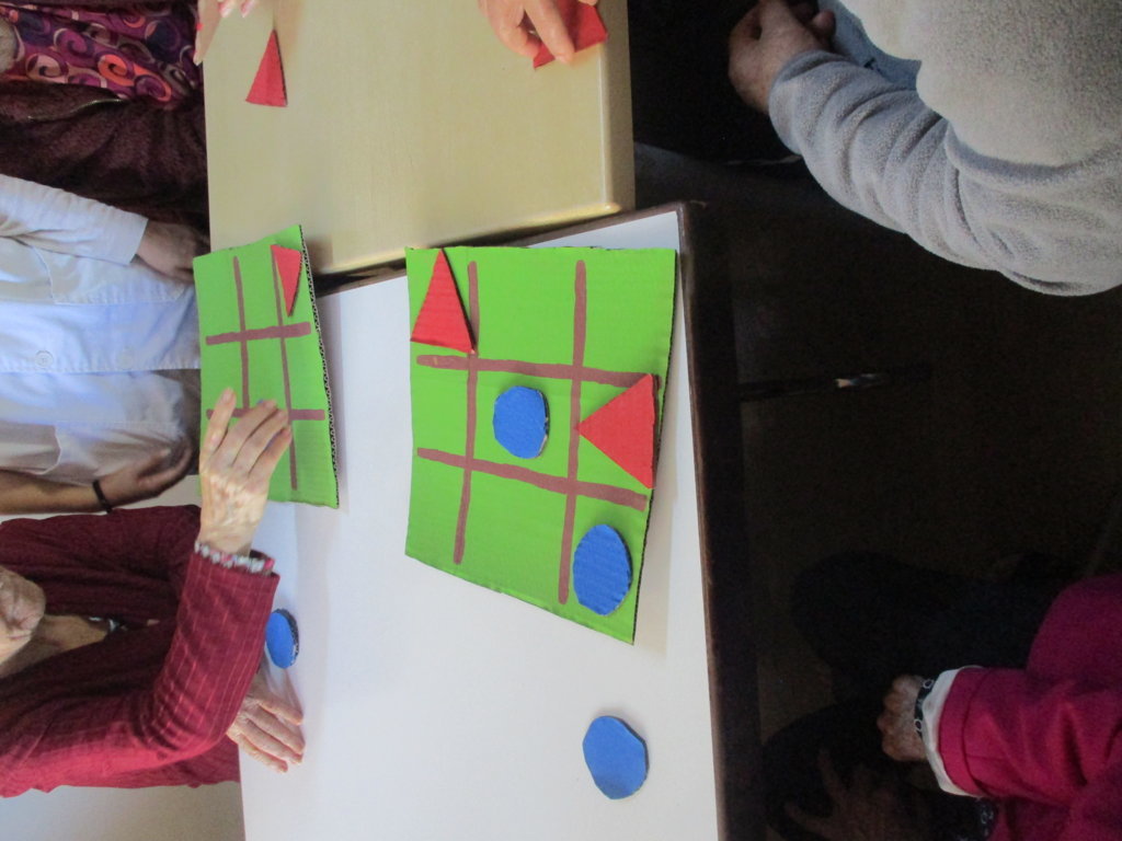 Se realizó un tres en raya muy divertido en el que, cada persona, tenía que ir pasándole las fichas al que se ubicaba al final de la mesa, que era el responsable de poner la ficha en el 3 en raya, procurando ganarle a su contrincante.