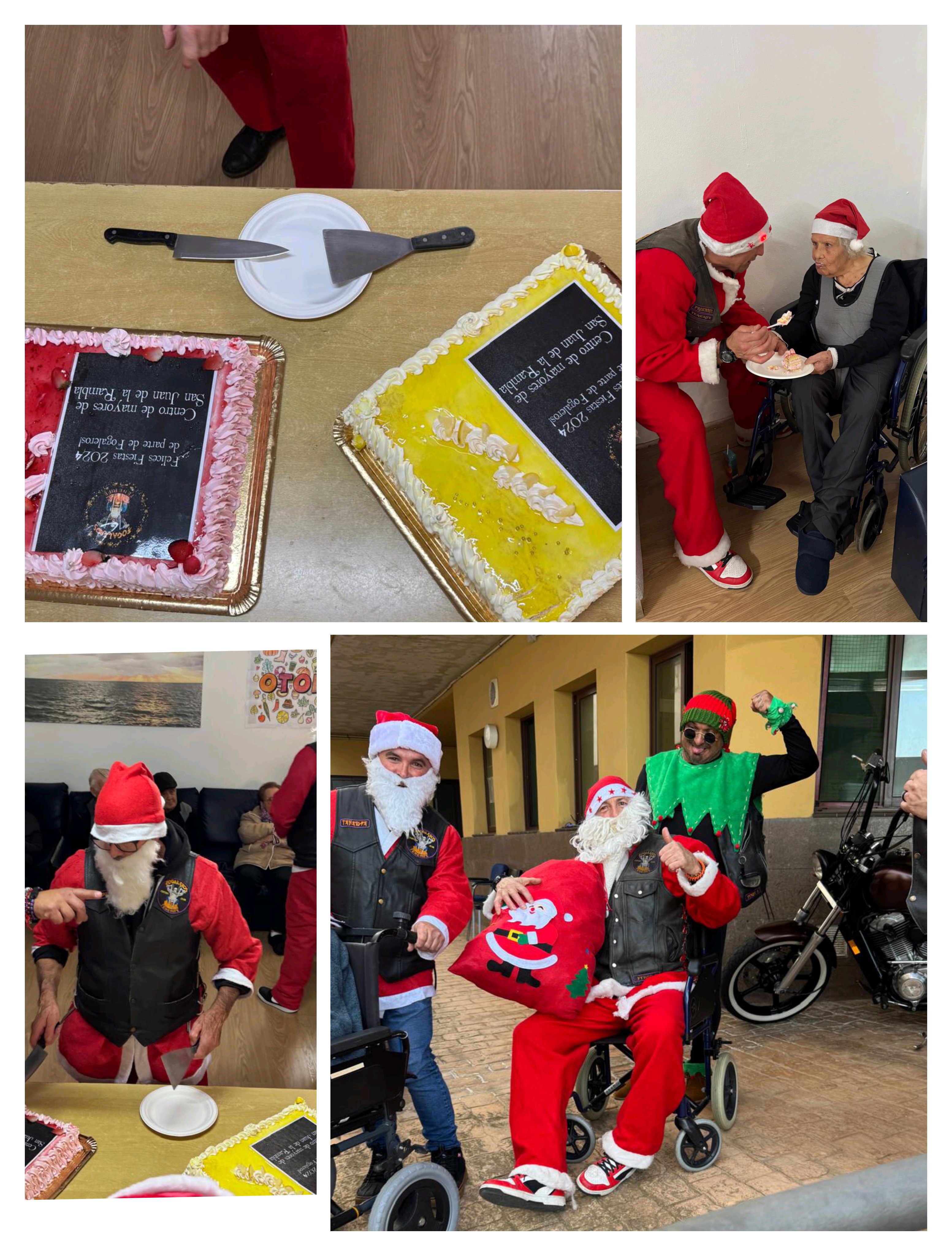 Al finalizar la visita, como ya hicieron años pasados, todos se reunieron para una foto grupal, mientras compartían un trozo de tarta que Los Fogaleros trajeron con mucho cariño. Además, el grupo ayudó a repartir las tartas entre quienes más lo necesitaban, mostrando una vez más su generosidad.
