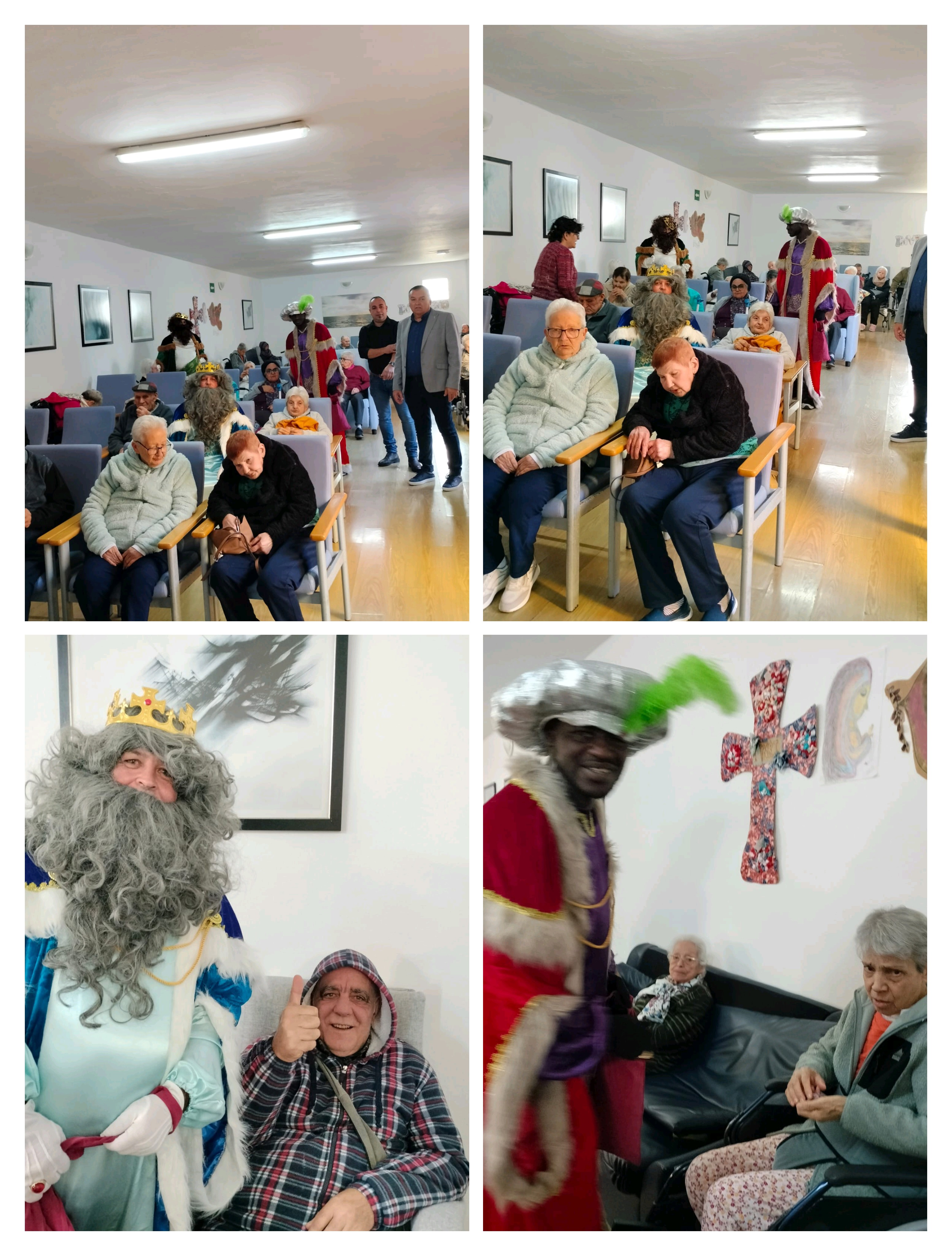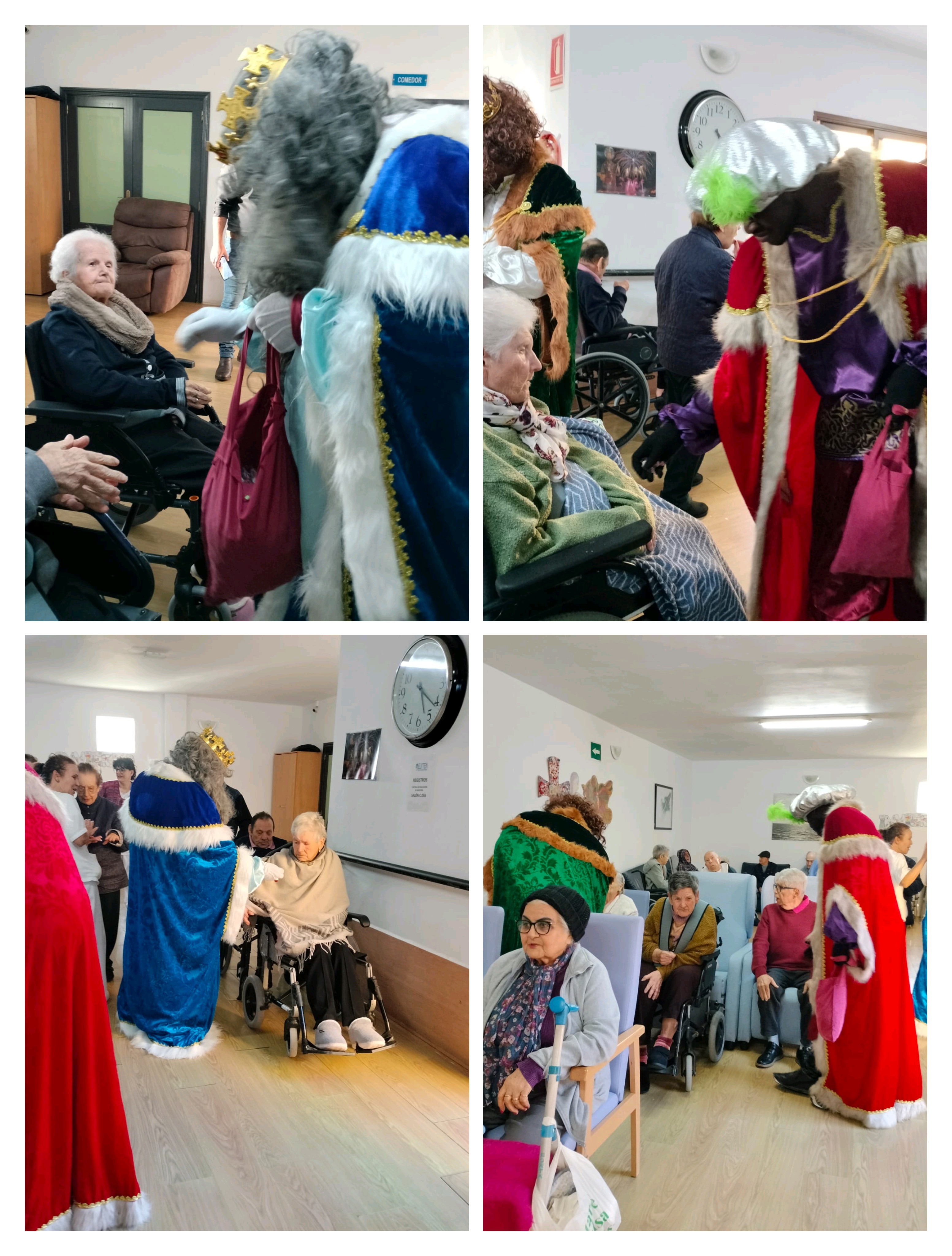 La emoción y la ilusión de nuestros mayores fueron contagiosas al ver a los Reyes Magos entrar al centro, cargados de caramelos y regalos para cada uno de ellos.