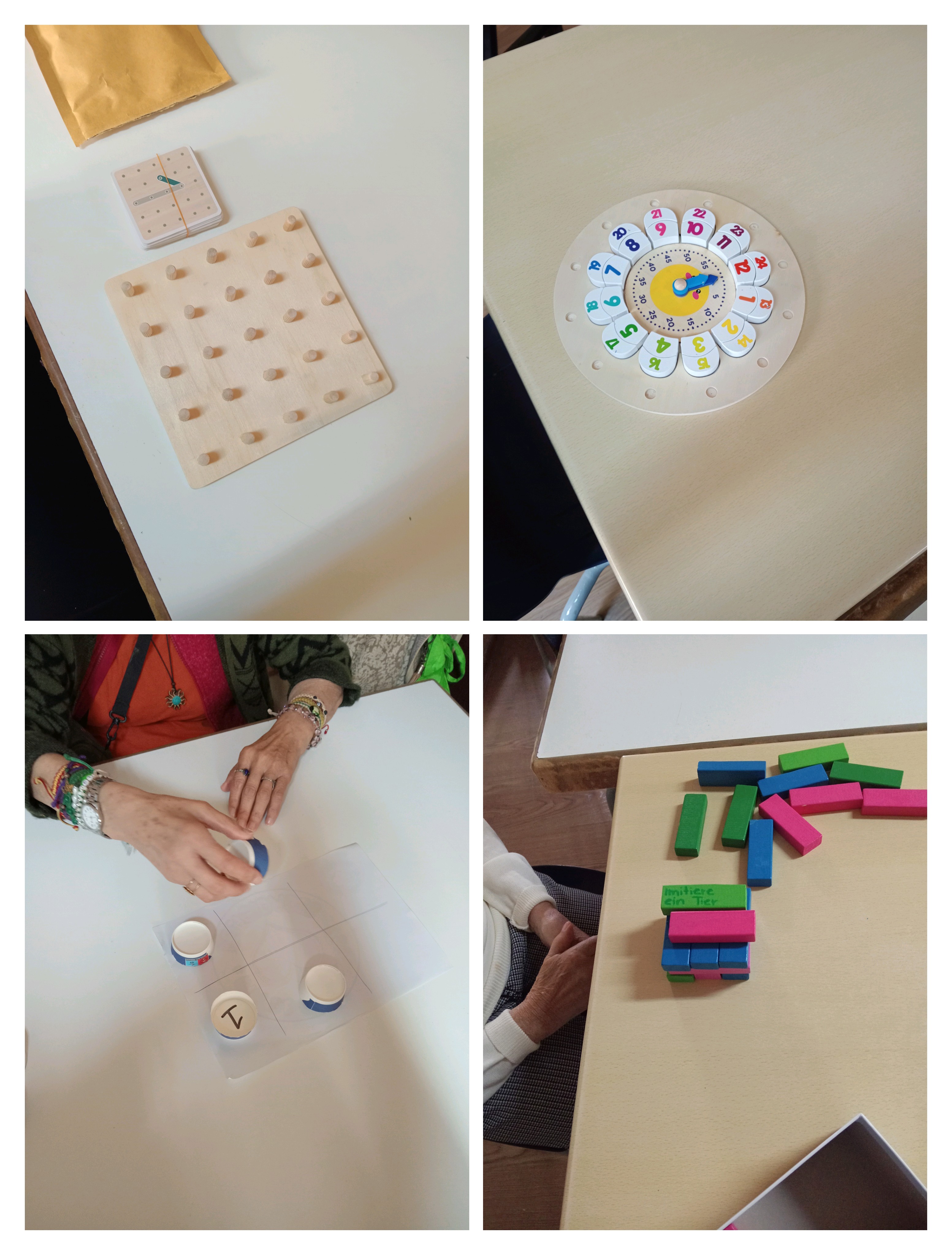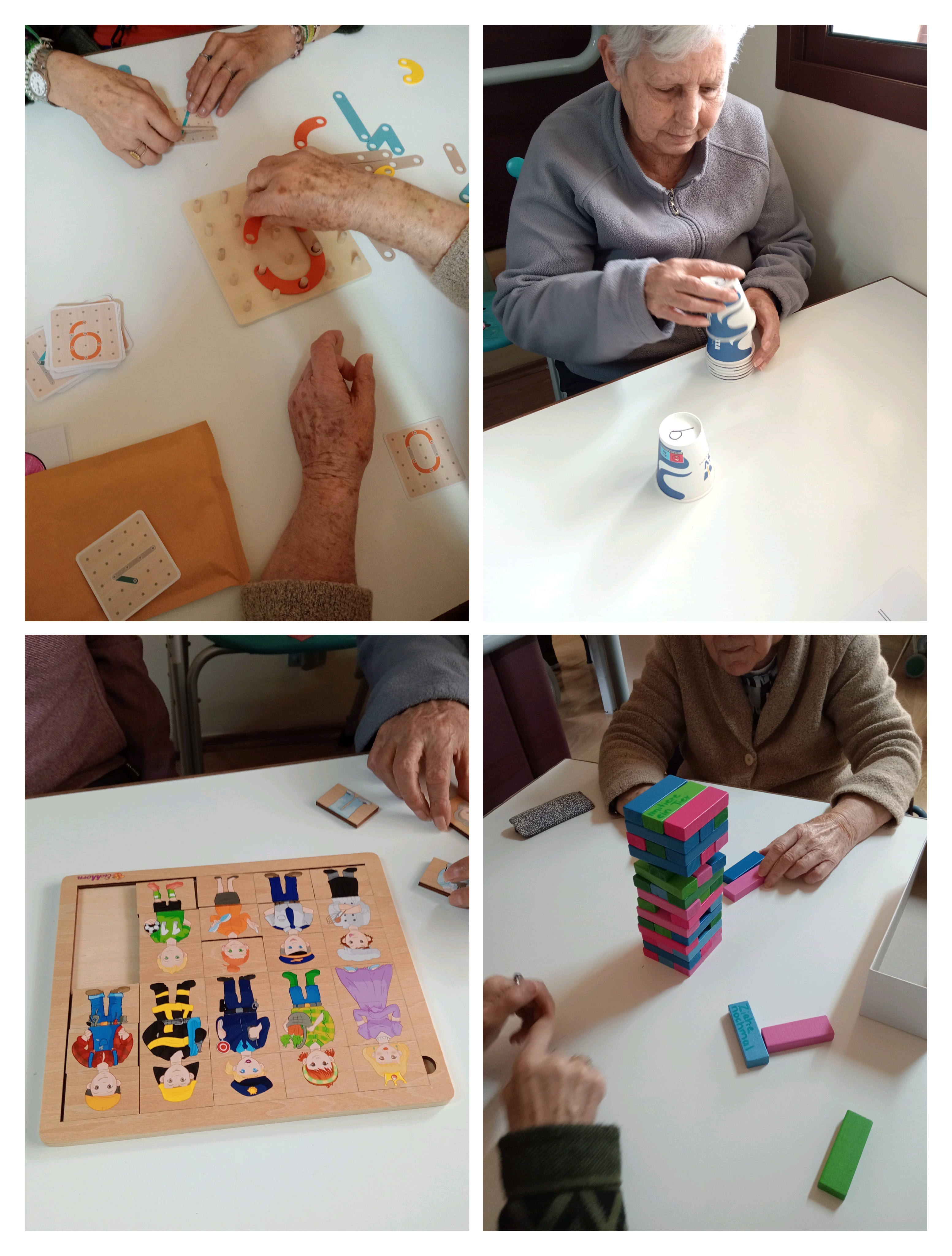En el Centro Sociosanitario San Juan de La Rambla, ELYTEN, nuestros mayores disfrutaron de un taller de estimulación cognitiva inspirado en el método Montessori. A través de diferentes juegos adaptados a sus capacidades —como puzzles de encaje, Jenga, juegos de colores, relojes didácticos y retos de memoria con vasos— ejercitaron la atención, la memoria, la coordinación y la lógica de forma amena y participativa.