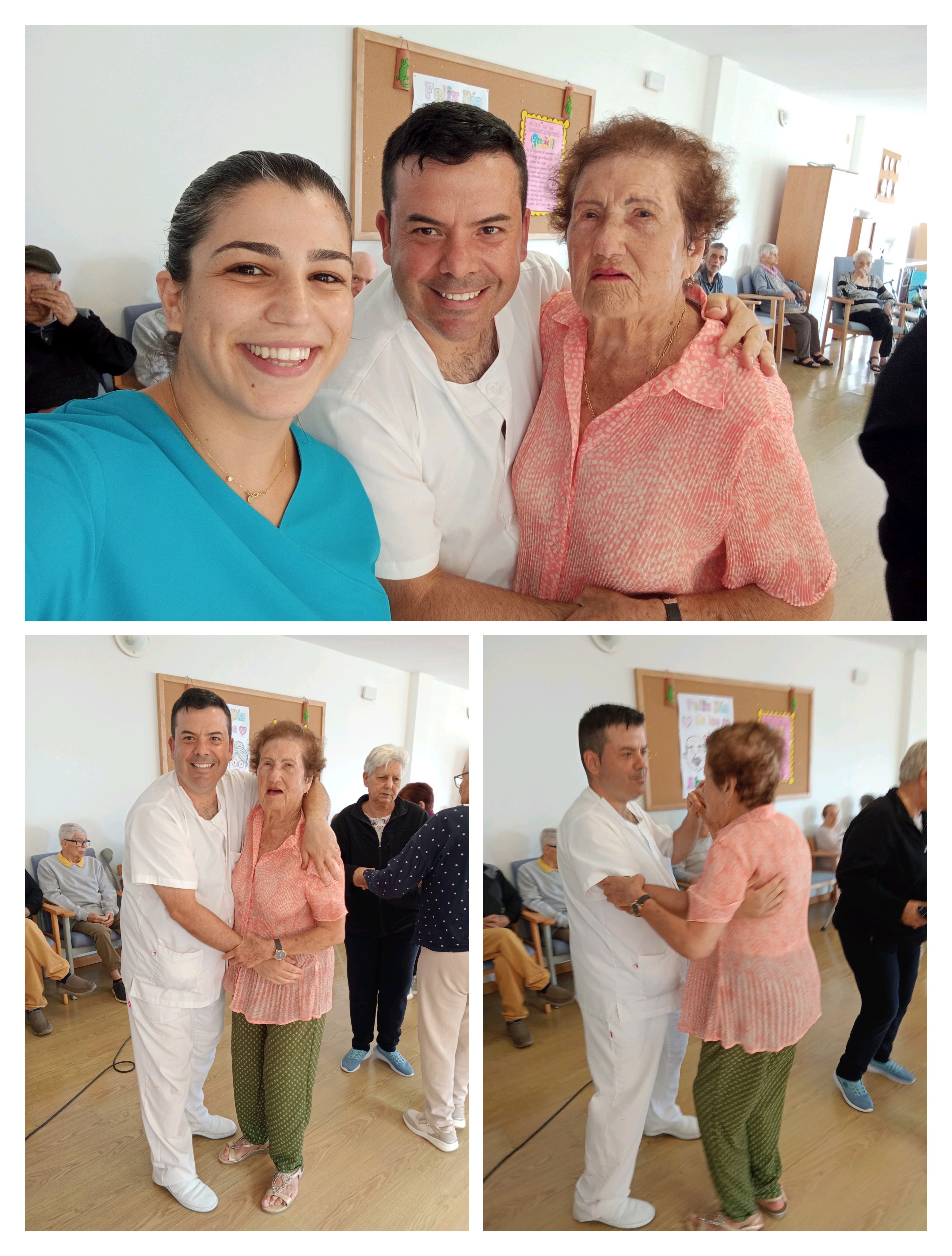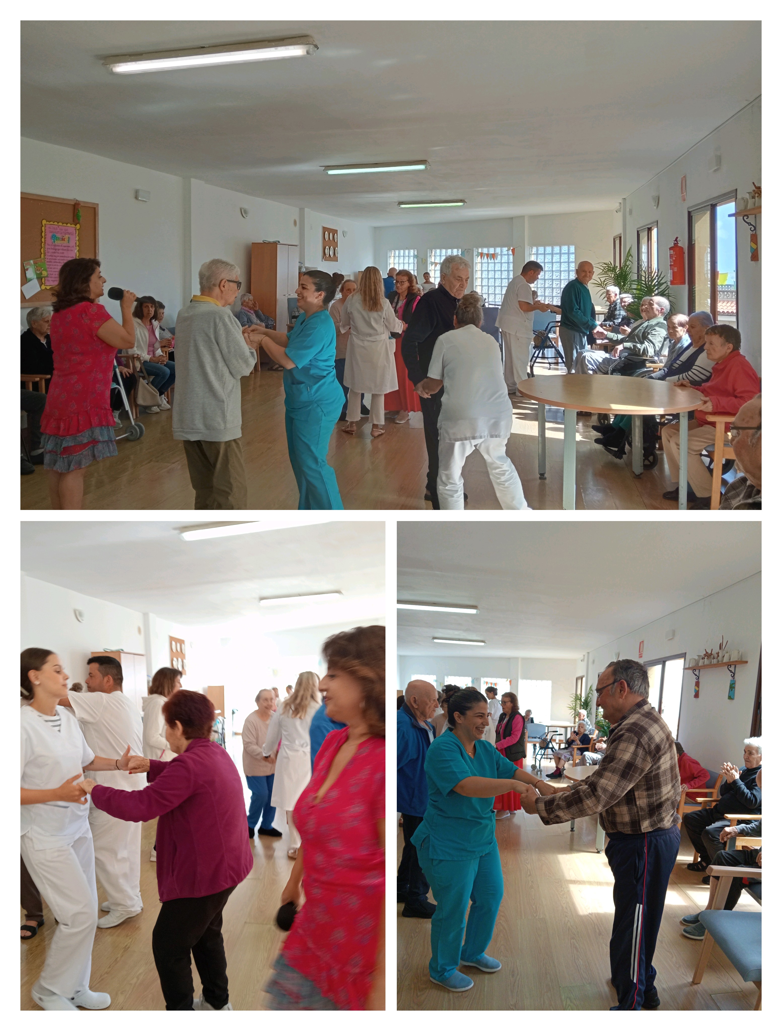 Durante toda la actuación, Pilar estuvo acompañada por las trabajadoras del centro, que no dudaron en unirse a la fiesta bailando con los residentes y ofreciendo apoyo personalizado para que todos pudieran participar y disfrutar.
