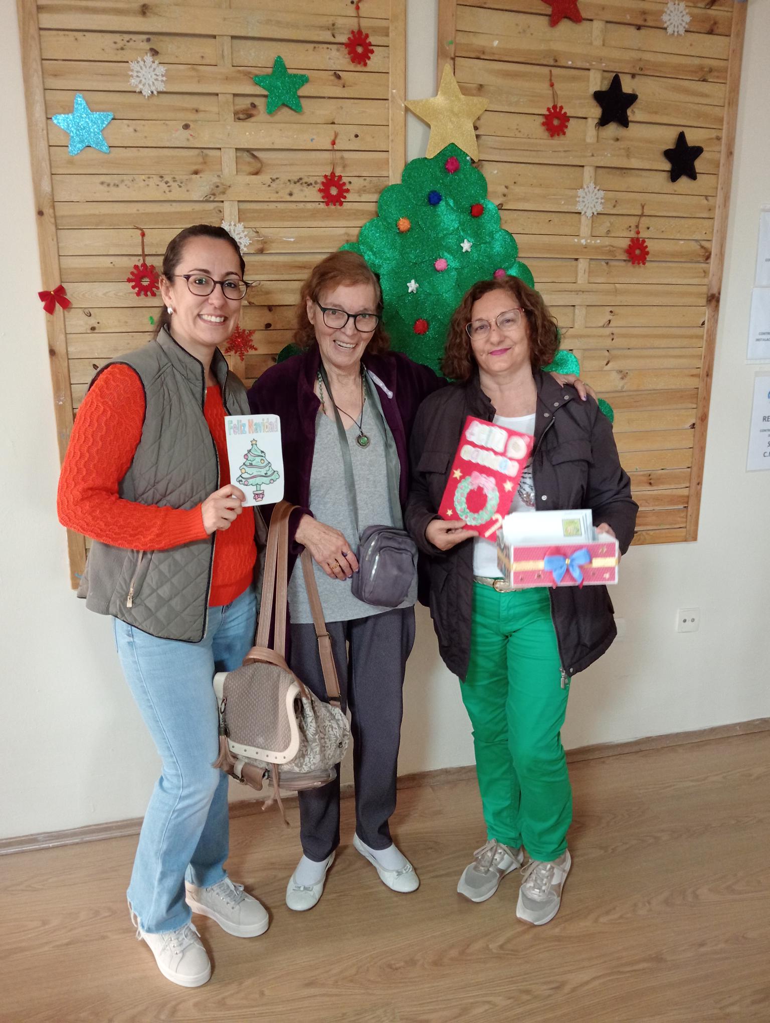 Su llegada volvió a llenar nuestro centro de alegría. Muchos de nuestros mayores las recordaban con cariño de años anteriores y, al saber que regresarían, prepararon postales navideñas hechas por ellos mismos para sorprenderlas y agradecerles su entrega. Fue un momento especialmente emotivo cuando Pilar, una de nuestras residentes, les leyó orgullosa la preciosa postal que había elaborado para ellas.
