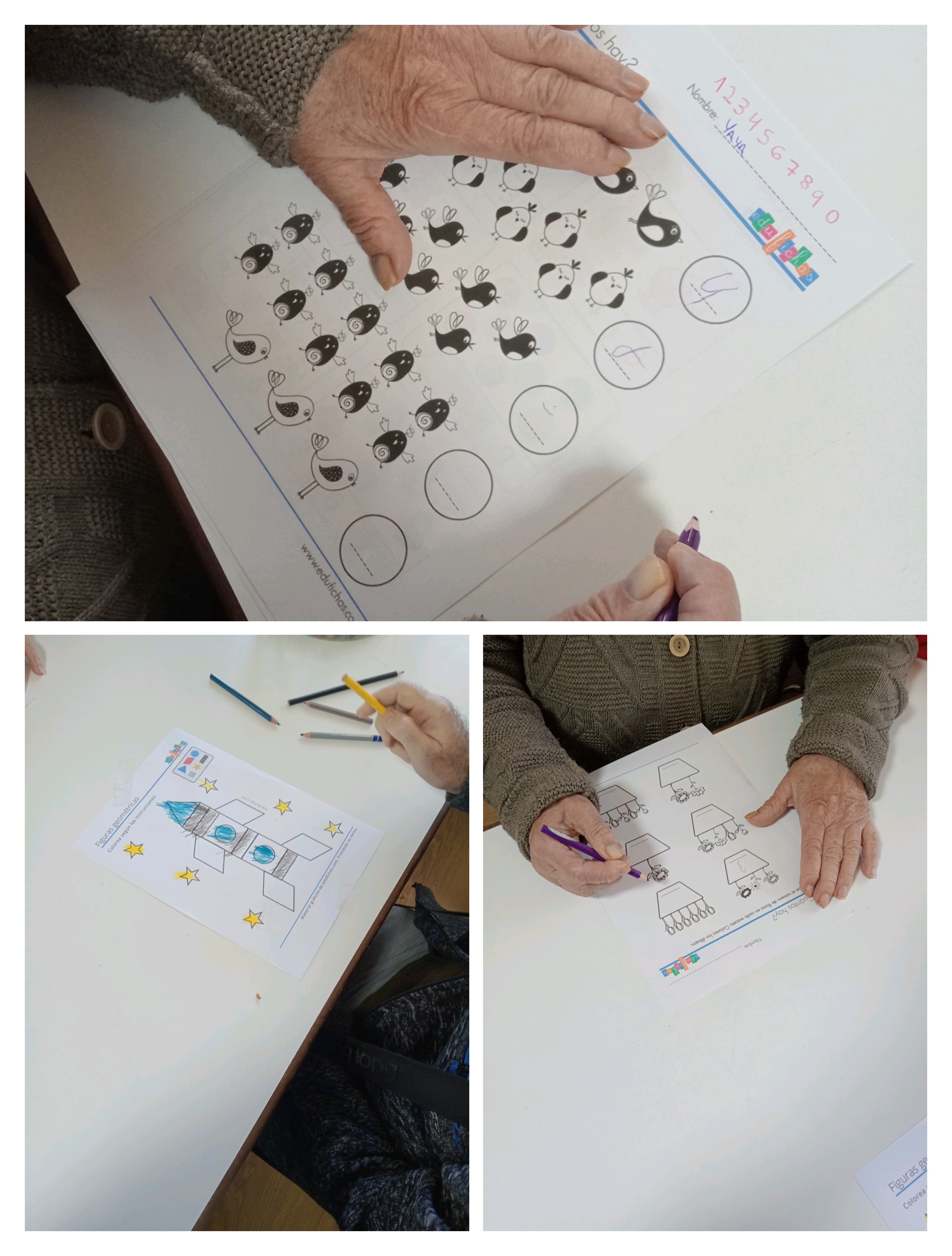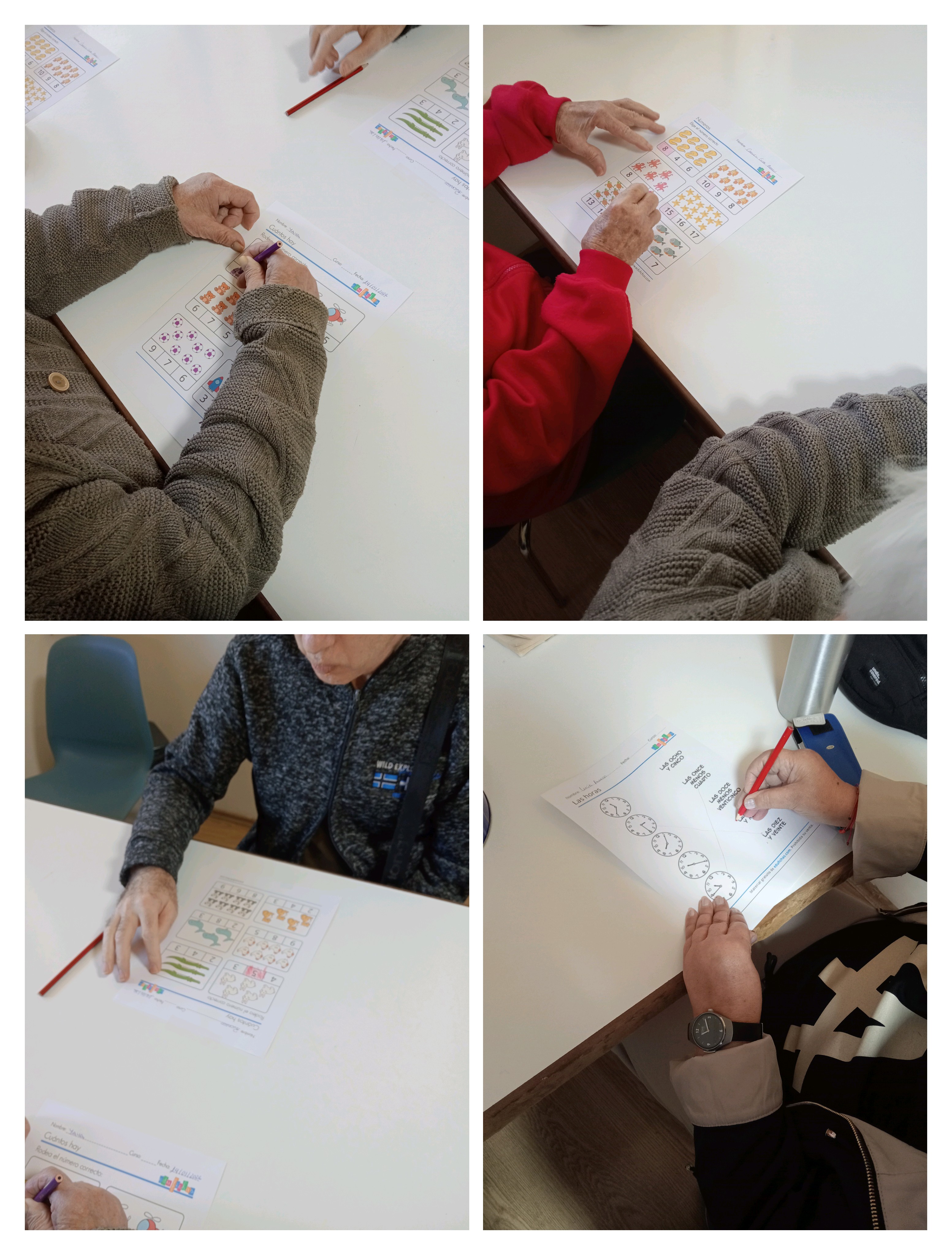 Durante la jornada se trabajaron habilidades como el cálculo sencillo, el uso del reloj, el conteo, las sumas básicas y el coloreado de figuras geométricas. La actividad se desarrolló en el salón social, en un ambiente tranquilo y participativo, permitiendo que cada persona realizara las tareas a su propio ritmo.