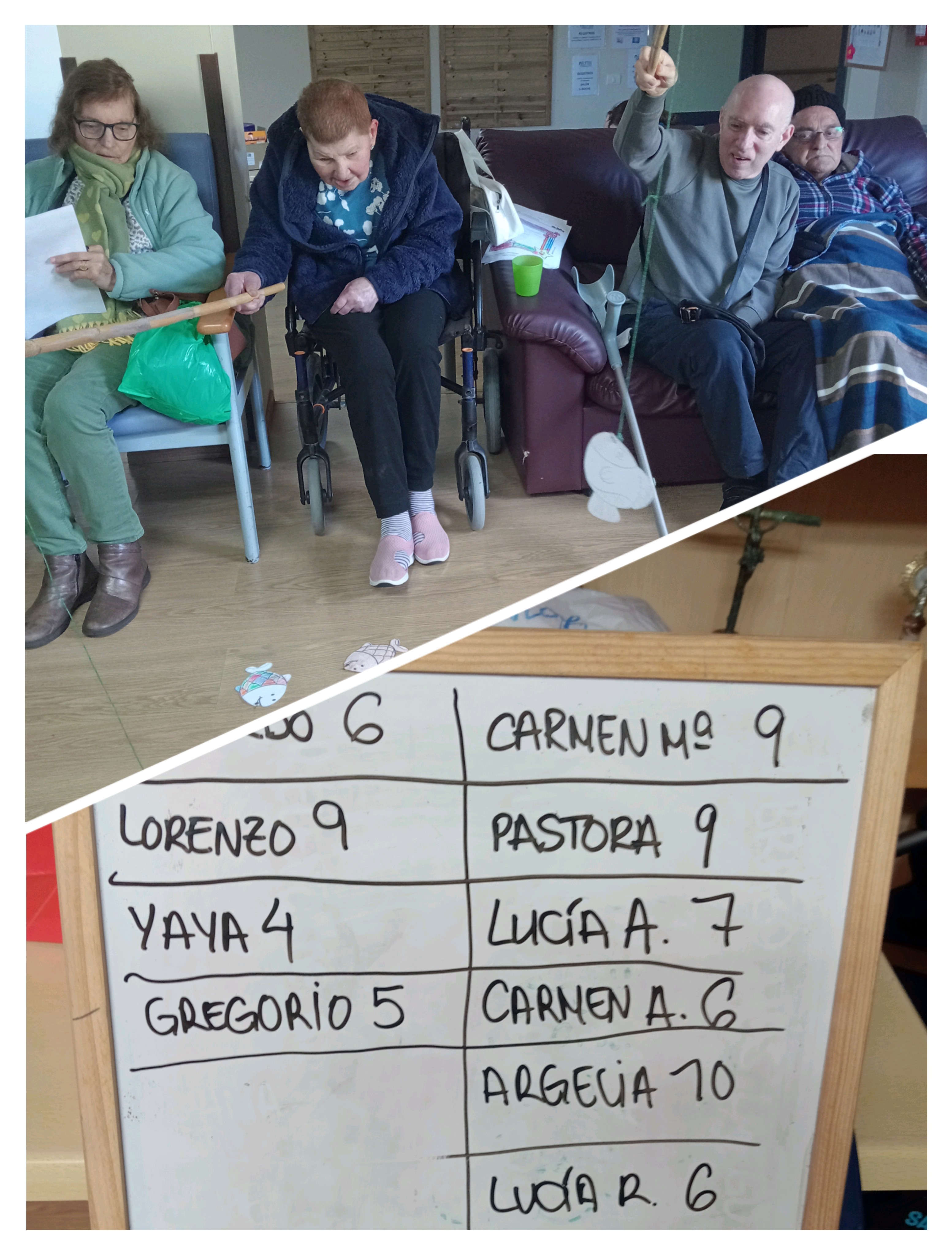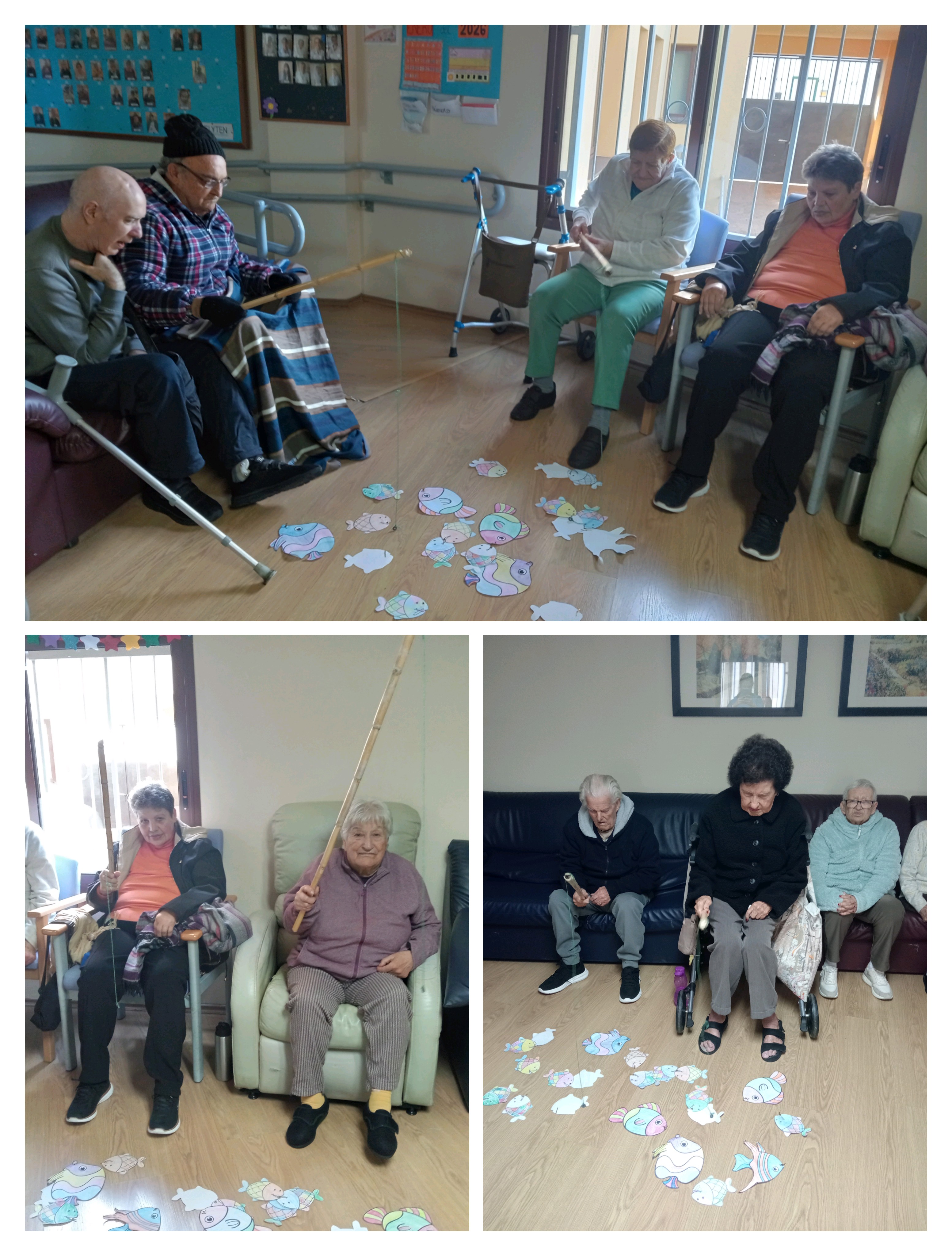 La actividad fue todo un éxito. Nuestros mayores disfrutaron enormemente de la experiencia, algo que se refleja claramente en sus sonrisas. Además, el juego despertó su lado más competitivo, dando lugar a momentos muy divertidos en los que intentaban “robar” los peces ya pescados por sus compañeros, siempre en un ambiente de risas y compañerismo.